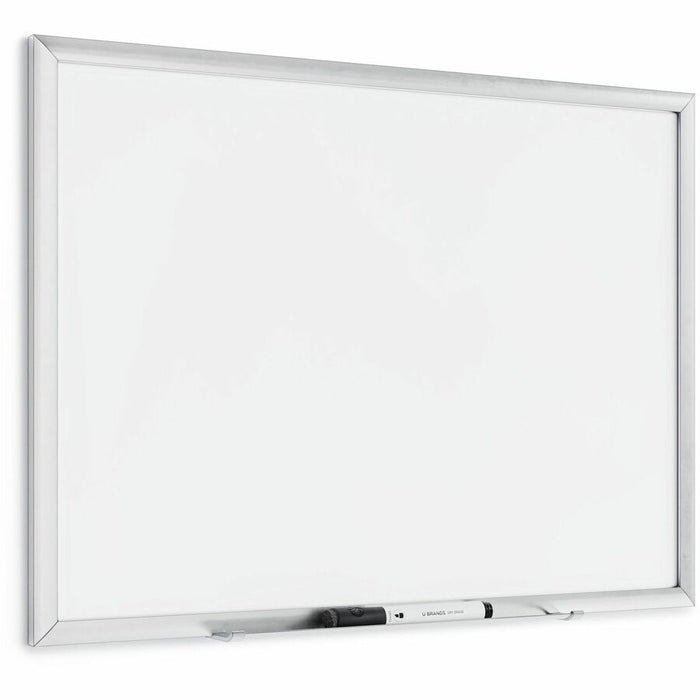This Magnetic Dry-Erase Board is the perfect, functional solution for frequently used areas such as your office, classroom, home or commercial space. Use U Brands Dry-Erase Markers (not included) to provide the ultimate writing experience. Magnetic, painted-steel surface ensures optimal performance by resisting staining and ghosting. Simply use any dry-erase board spray or wipes after continuous use for a clean, professional surface. Use board magnets to pin your notes, messages, pictures, memos, calendars, menus, reminders and more. Magnetic design lets you attach magnetic markers and accessories (not included) to the board without using a marker tray. Strong, thick insulation underneath the surface and sturdy, aluminum frame provide a firm, rigid construction. Hang vertically or horizontally to fit your allocated space.