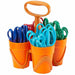 This Classpack Scissors Caddy with Pointed-Tip Kids Scissors efficiently organizes 24 pairs of scissors in four vibrant colors. A larger finger loop and an ergonomic thumb loop provide a natural, more comfortable fit for kid's fingers. Specialty scissors feature an innovative safety-edge blade for high-quality cutting with a safe blade angle. Caddy bins can be removed and re-attached easily. Scissors are both left-handed and right-handed.