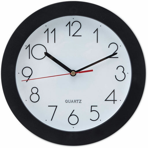 Lorell 9" Round Profile Wall Clock - Analog - Quartz - White Main Dial - Black/Plastic Case