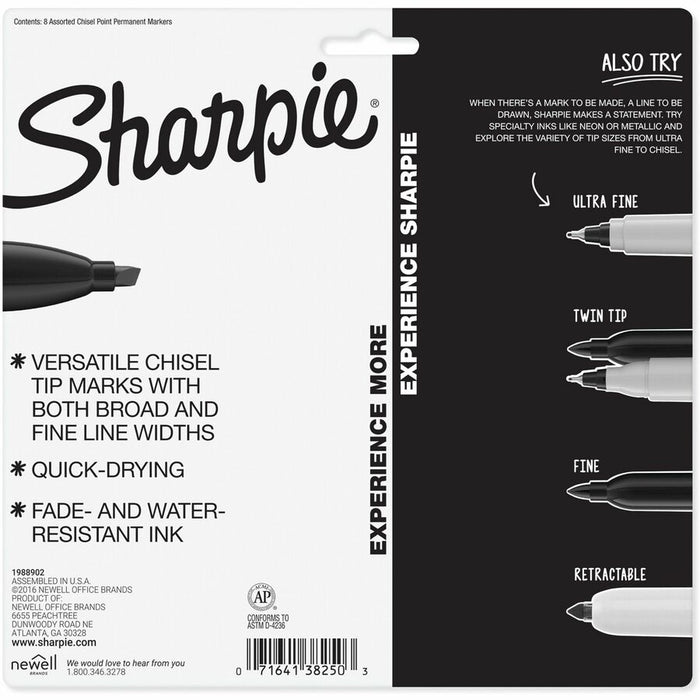 Thin Chisel, Thick Marker Point - Assorted Ink - Alcohol Based - 8 / Pack- Permanent ink proudly marks on paper, plastic, metal and most other surfaces