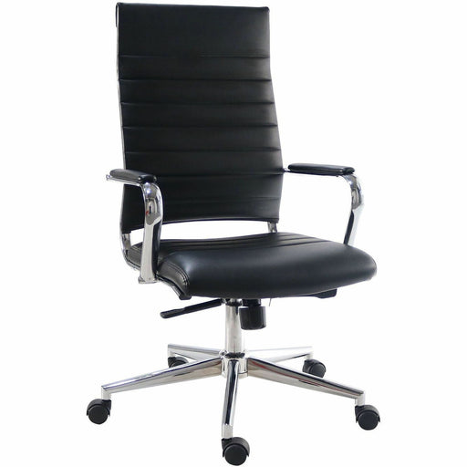 LorellChrome Frame Material - High Back - Black - Leather, Chrome - Armrest - 1 Each Tempo Modern High-Back Executive Chair features a sleek Executive pr...