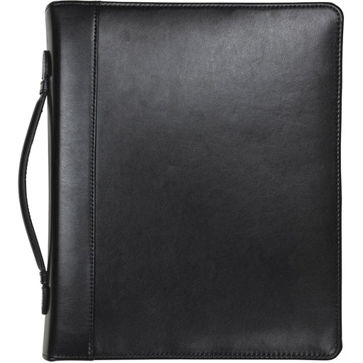 Samsill1" Folder Capacity - 8 1/2" x 11" - 1" for Folder - Internal Pocket(s) - Leather, Metal - Black - Zipper Closure, Handle, Tablet Pocket, Document P...