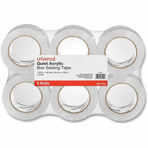 Universal Quiet Tape Box Sealing Tape, 3" Core, 1.88" x 109 yds, Clear, 6/Pack