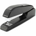 Attractive, streamlined design helps enhance almost any workplace environment. Solid metal construction and precision parts ensure reliable performance for years to come. Soft padded top grip helps relieve hand stress, and the nonskid base helps you keep a secure footing. Desktop stapler holds a full strip of standard staples. 3 1/2" throat.