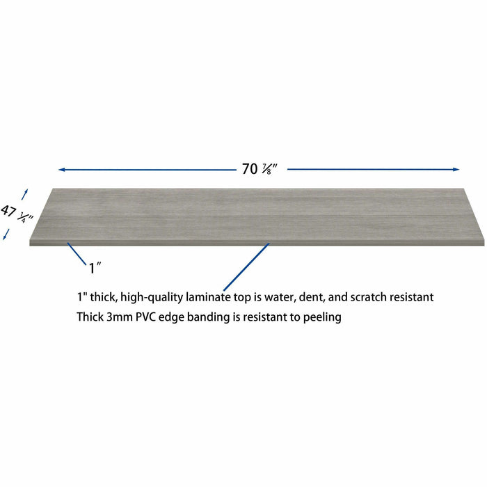 Modular conference table can be used on its own or with other Lorell Essentials Series Wood Laminate Furniture that offers high-quality laminate construction and a contemporary design. Ideal for a small meeting area in executive offices, tabletops and bases are made with eco-friendly particleboard, laminated melamine finish and 3mm PVC edgebanding. Configure your conference table using the number of end/mid bases according to the size of the conference tabletop you need and whether you include an adder to expand your meeting surface area. Each top offers a smooth surface with no grommets. Tabletops and bases are sold separately. For a complete table, use this top with another 72" top and three bases or another 72" top, an adder top and four bases.
