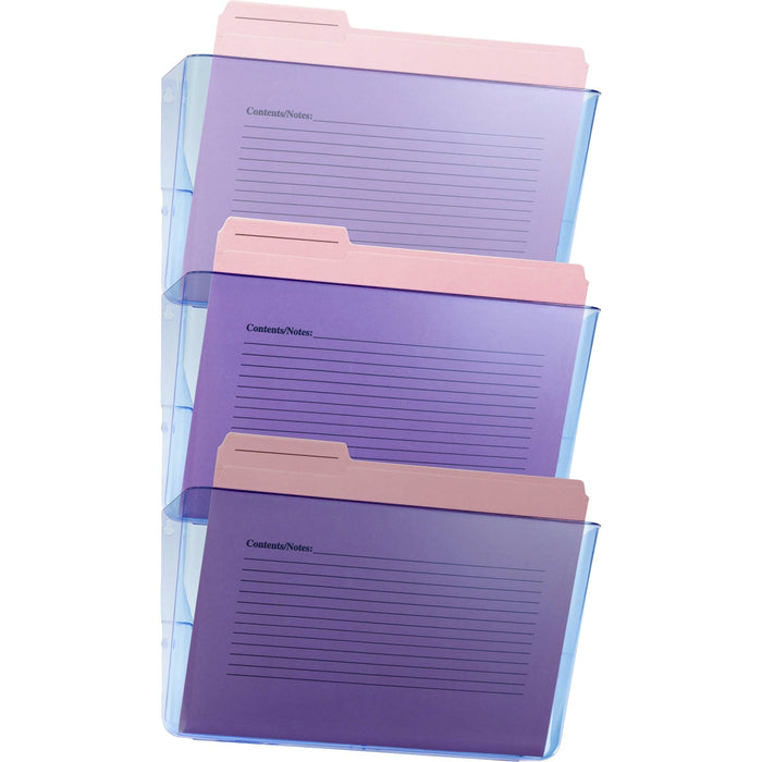 Officemate Blue Glacier™ Wall File, 3/Box - 15 Height x 13 Width x 4.1 Depth - Stackable - Transparent Blue - Plastic - 3 / Pack
