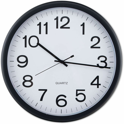 UniversalAnalog - Quartz - White Main Dial - Black Case - Plastic Large face makes this classic, round clock easy to read from a distance. The clean text st...
