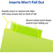 - Unique tab design for easy access and to prevent inserts from falling out