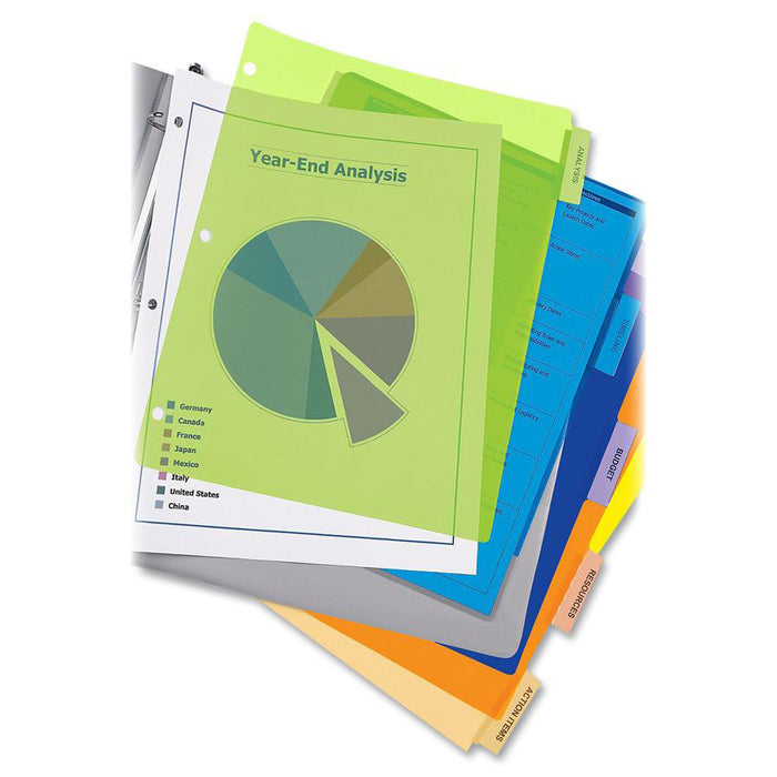 5 x Divider(s) - 5 - 5 Tab(s)/Set - 8.5" Divider Width x 11" Divider Length - 3 Hole Punched - Translucent Plastic Divider - Multicolor Plastic Tab(s)- Bigger, more secure tabs