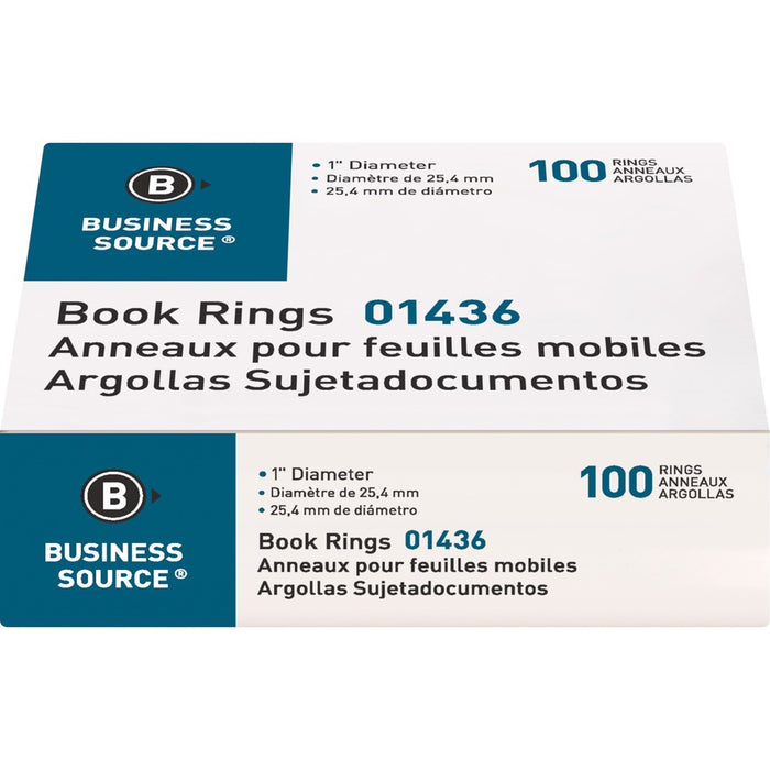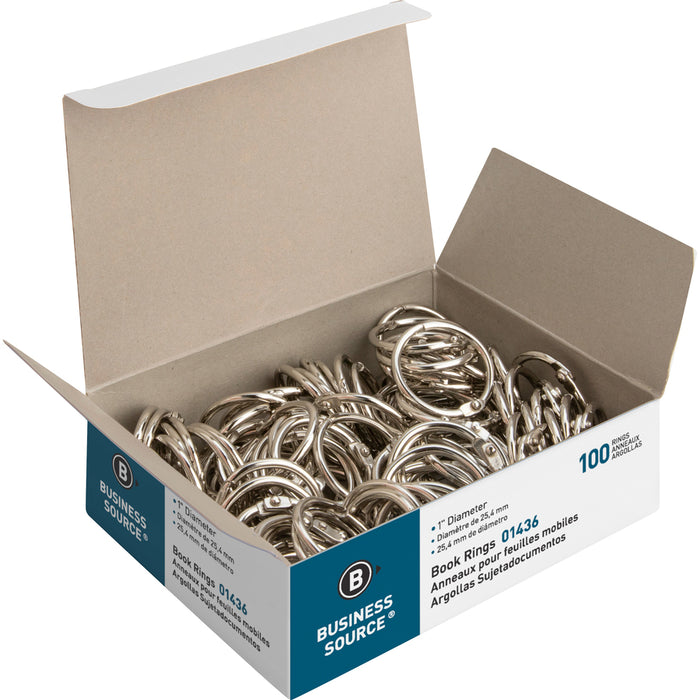 Business Source Standard Book Rings - 100 / BX - 1 Diameter - Silver - Nickel Plated - 100 / Box